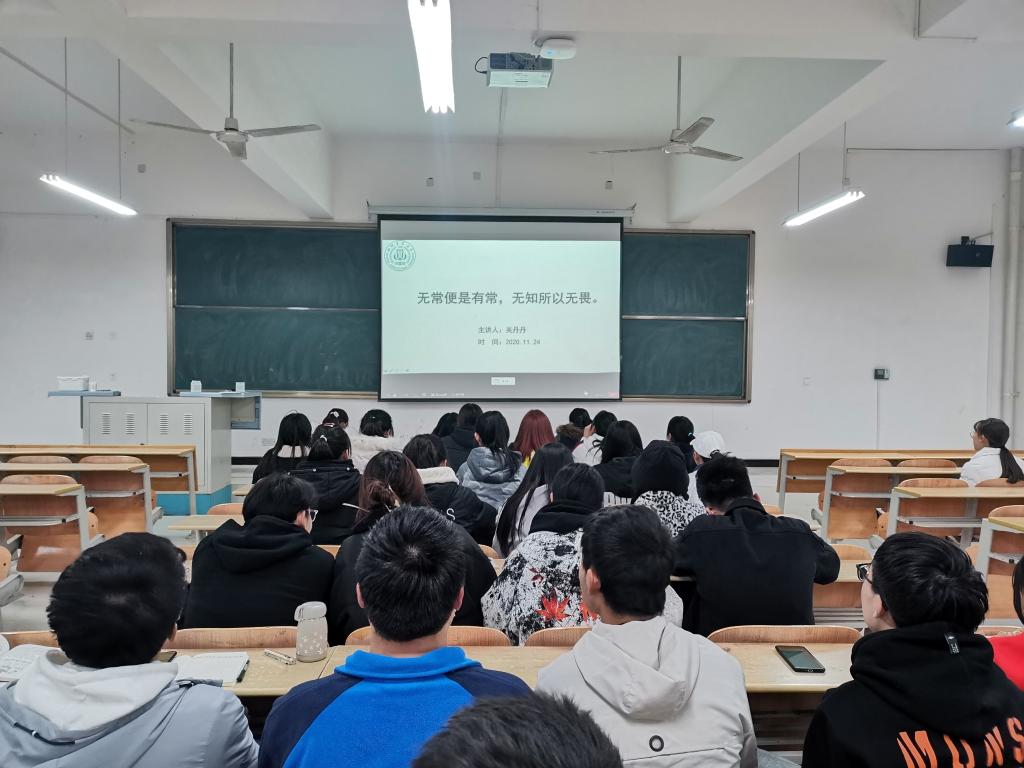 为发挥榜样示范作用,激励学生做好人生规划,激发学习斗志,树立远大理想,11月24日晚,澳门pg官方电子平台邀请优秀毕业生吴丹丹,在江北1204教室举办了“无常便是有常,无知所以无畏”为主题的线上报告会。2018、2019、2020级生物技术专业100余人听取了汇报,副院长杨芳主持报告会。
