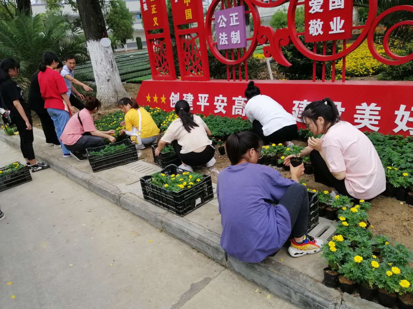 在高新绿化公司,学生系统性地学习了钢架温室内现有各种草本花卉的形态分类识别,了解不同生态环境下花卉的生长发育状况和规律,常见草本花卉的繁殖育苗技术方式、栽培养护管理技术要点,园林植物的病虫害防治技术,基质的配制、消毒杀菌、装钵、移栽;熟悉了观赏植物的换盆、倒盆,更换基质等操作。实习中,同学们勤奋好学、积极投入到企业的生产任务中,参加了月季的嫩枝扦插育苗、龙爪菊的花期调控、三色堇和角堇的栽植育苗、迎“国庆·中秋”双节前的模纹花坛景观布展等活动。