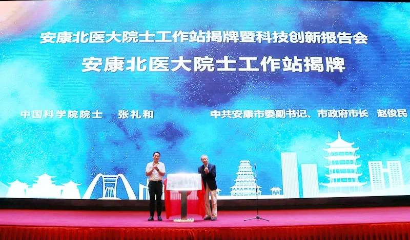 9月11日上午,澳门pg官方电子平台30余名师生应邀参加了安康北医大院士工作站揭牌仪式暨科技创新报告会。安康市委副书记、市长赵俊民,中国科学院院士、北京大学教授张礼和共同为工作站揭牌。省科协党组成员、副主席吕建军,市委常委、副市长刘建平出席并讲话。