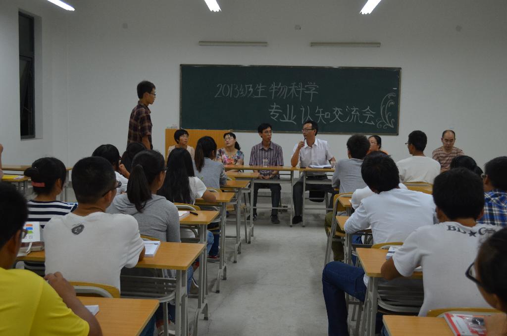 总支书记屈国胜参与2013级生物科学专业座谈会,就如何适应大学生活,强调大学的学习要有主动性和解决问题的目的性,着重培养自律意识,提前运筹职业生涯规划,鼓励同学们把握好大学的时间,合理规划,拓宽视野,以获取大的成就。