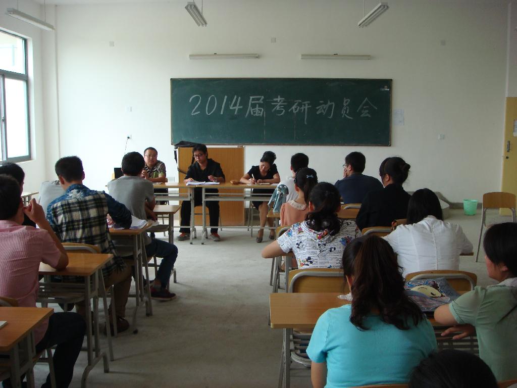 9月9日,考研指导老师常江、段展展对2014届本科毕业生考研进行了专题辅导。两位教师结合近年来积累的指导考研经验,以考研成绩优秀同学为案例,从考研的目的、意义、学习方法等方面进行了讲解,就学生个人最关心的问题进行了现场答疑,取得了较好效果。