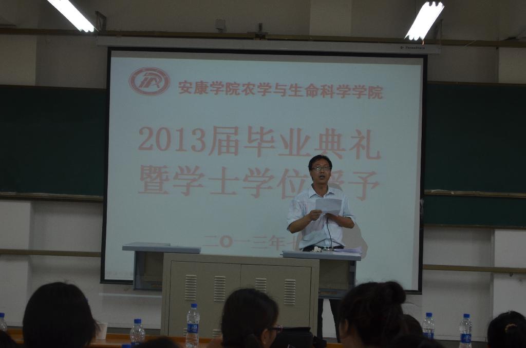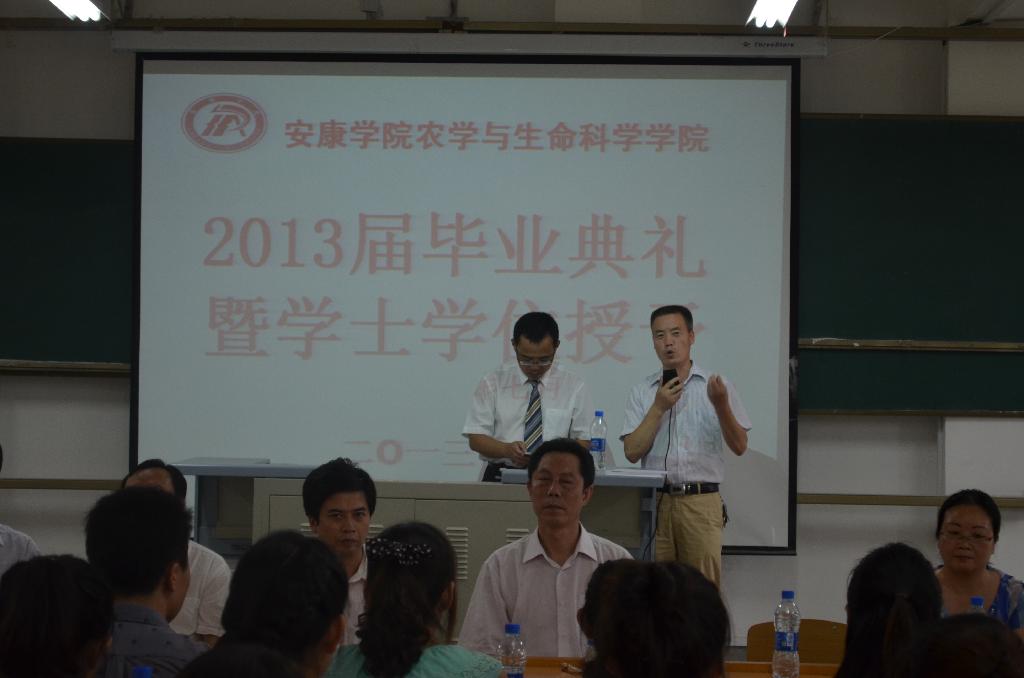 7月7日下午,澳门pg2013届毕业生毕业典礼在1201教室隆重举行。副校长陈刚,教务处副处长常权记,农生院院长王军、总支书记屈国胜,副院长杨松杰、陈立强,教师袁海龙、杨芳及辅导员出席了毕业典礼。典礼由副院长陈立强主持。