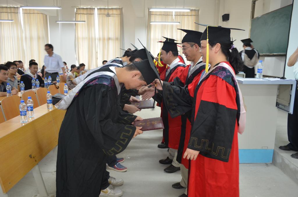 副校长陈刚、教务处常权记及澳门pg领导老师为2013届107位本科毕业生颁发了学士学位证书。