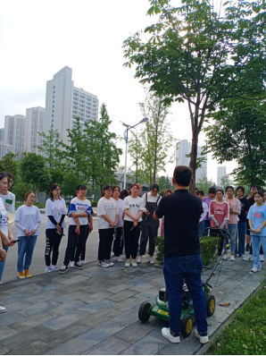 在紫薇园林绿化公司的大力支持和配合下,学生进行了多种绿篱及灌木球、月季和金银花等园林植物的整形修剪养护,深刻地理解草坪草的养护修剪技术实训,遵循“一知二看三剪四查五处理”原则;学习了绿篱机、割灌机、草坪修剪机等常见园林机械设备的操作,帮助学生更好地理解这些设备的工作原理、型号及保养技术。