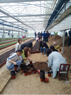 在高新绿化公司,学生参观进一步学习了钢架温室的结构、设施设备及功能,草本花卉的形态识别,了解不同生态环境下花卉的生长发育状况和规律,常见草本花卉的繁殖育苗技术方式、栽培养护管理技术要点、园林植物的病虫害综合防治技术等。