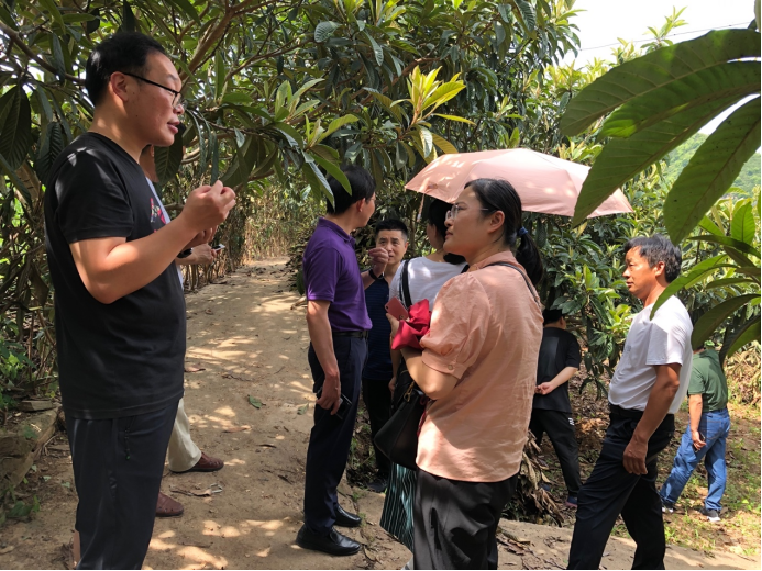 随后,在张俊明经理的带领下,澳门pg官方电子平台教师团队赴基地参观了两岔河村枇杷种植园,现场针对枇杷栽培技术和病虫害管理等方面的问题进行深入交流和技术指导,并合影留念。