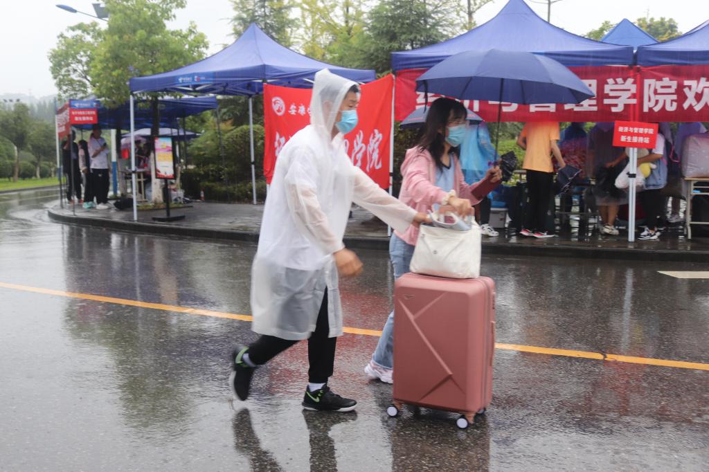 三天来,大雨不断,但是迎新现场秩序井然,接待组的学生干部及志愿者始终坚守岗位,从早上七点到晚上十一点不停奔波,任劳任怨,热情周到,为新生提供一对一的“一条龙”服务,确保了迎新工作的顺利完成。