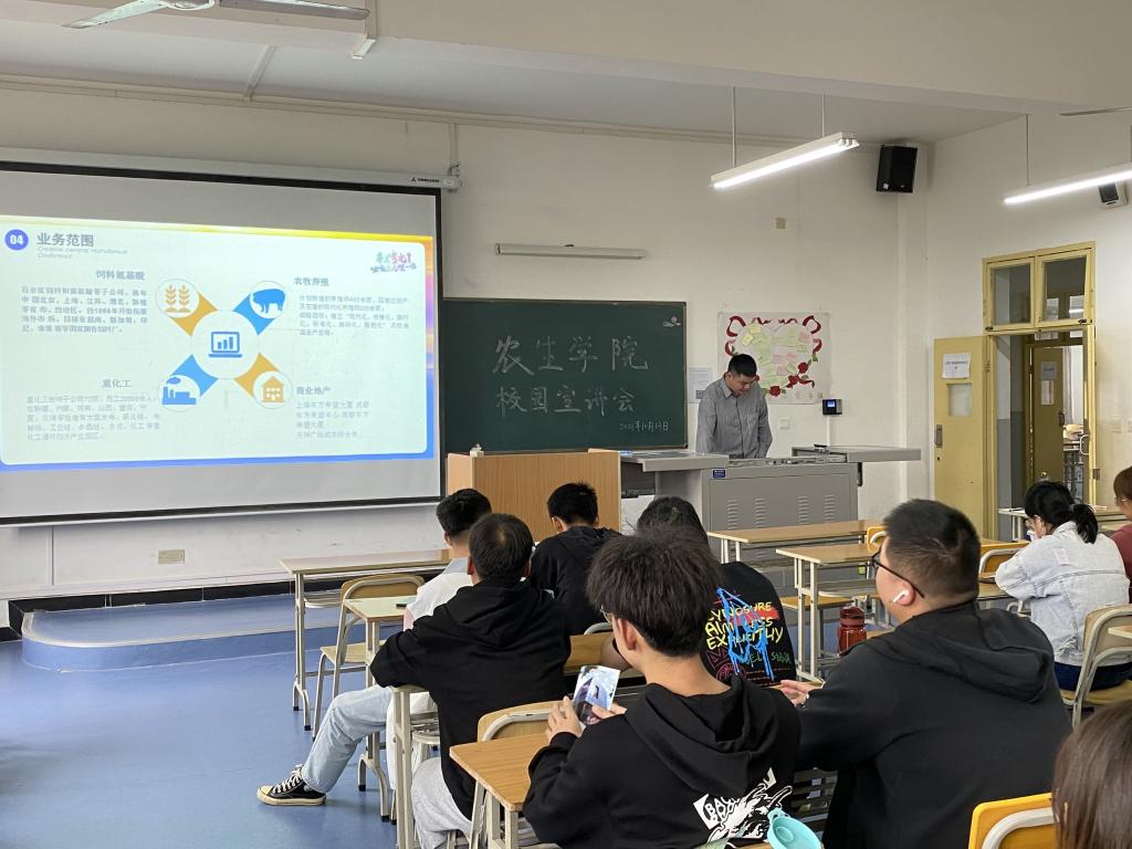 2021年10月13日下午,东方希望集团有限公司校园宣讲会在江北校区1218教室举行,宣讲会由公司招聘专员翁男主讲,澳门pg生物技术专业30余名学生参加了本次校园宣讲会。