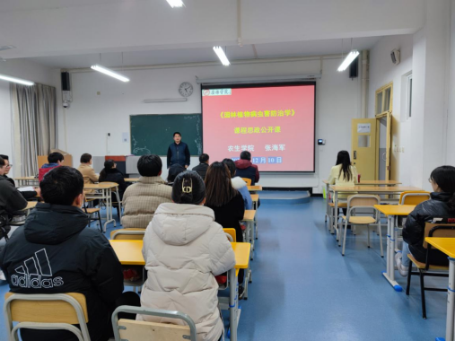 张海军老师主讲了《园林植物病虫害防治学》“课程思政”教学公开课,课堂上结合园林专业特点和教学实际,围绕五个方面进行讲解:一是谈个人对“课程思政”的认识。二是明确“课程思政”的目标。该课程是以习近平新时代中国特色社会主义思想为指导,坚持知识传授与价值引领相结合,贯彻“绿色环保+生态经济+安全有效+综合防治+系统论”的理念,运用以培养大学生理想信念、价值取向、政治信仰、社会责任的题材及内容开展专业课的课堂教学活动,全面提高园林专业本科人才培养质量。三是“课程思政”的育人原则。四是“课程思政”的育人理念。五是“课程思政”素材库的建设方法。