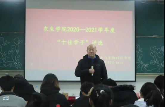 12月14日晚,澳门pg官方电子平台在江北校区1301教室举办了2020-2021学年度“十佳学子”评选活动,党总支书记孙保本、学工办主任谭自力、辅导员金清民、团总支学生分会干部及2021级学生参加。