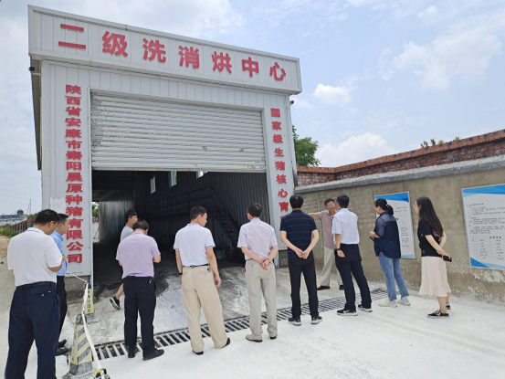 2021年7月1日,中国动物疫病预防控制中心对阳晨集团国家级猪伪狂犬病净化示范场进行现场评估,澳门pg权群学教授和赵鸿远博士应邀对企业的评估工作进行技术指导。在现场评审会上,赵鸿远博士代表企业作了猪伪狂犬病净化示范场创建工作汇报。然后,专家组一行参观了安康市秦阳晨原种猪有限公司的种猪场及车辆洗消烘中心、现代农业园区等配套设施,权群学教授在现场为评审组专家介绍了公司在猪伪狂犬病净化示范场创建过程中所做的工作。