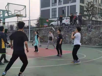 四点左右,参赛的老师和同学们早早的来到篮球场进行热身准备。随着口哨的吹响比赛正式开始,学生队迅速进入比赛状态,快速奔跑,精准中投,良好组织,比分超出教工队10多分。教工队迅速调整战术,靠着出色的配合,积极的跑位将比分慢慢缩小。上半场比分为40:30,学生队领先10分。下半场,老师们的状态越来越好,稳扎稳打,精妙配合,将比分反超,学生迅速调整自己的状态,接连命中中远距离投篮,近距离的上篮,将比赛推入白热化的阶段。双方队伍你来我往,互不示弱,十分激烈,最后以76比76平结束了这场的精彩篮球赛。