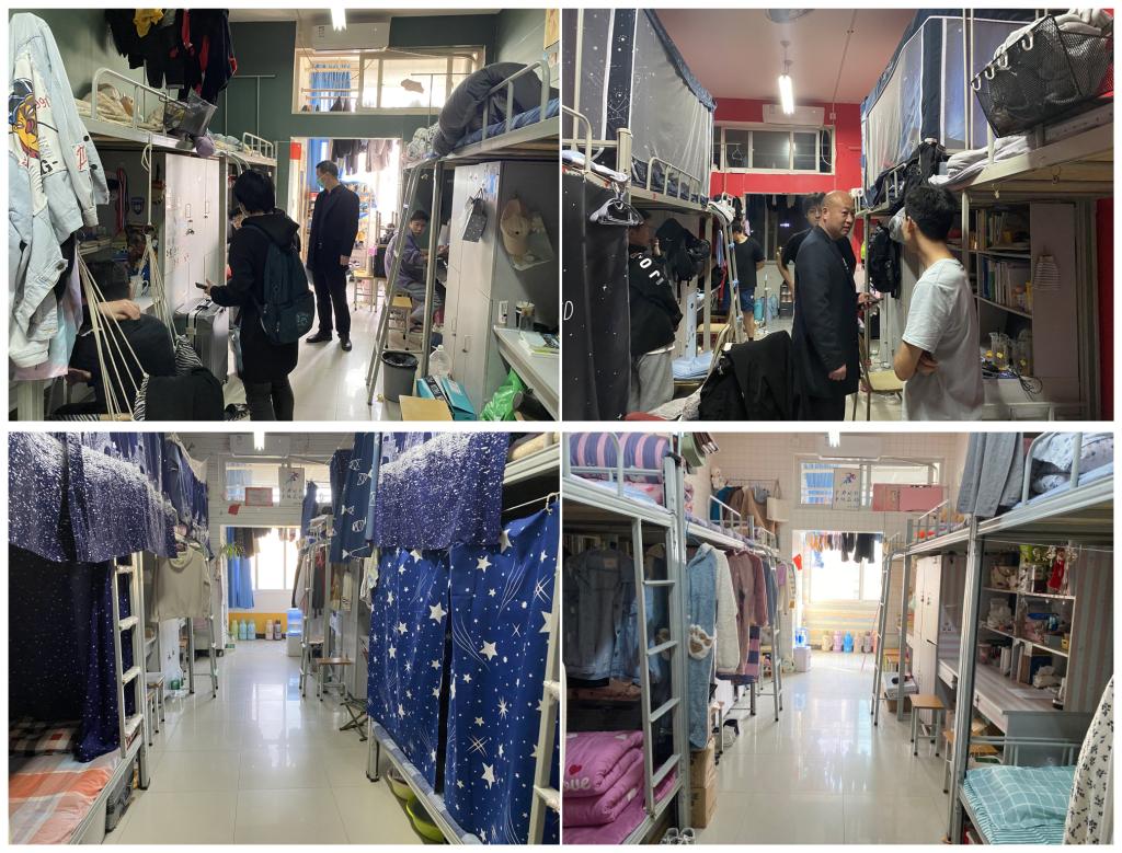 学院领导深入学生宿舍,从宿舍卫生、物品摆放、宿舍安全、宿舍纪律、宿舍美化等几方面进行细致检查指导,要求同学们做好晨午检,养成良好的生活习惯。