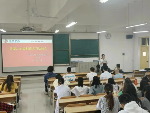 4月24日上午,澳门pg官方电子平台澳门pg官方电子平台2019级、2020级茶学专业学生在专业教师李冬花、齐玉岗、吴冲带领下,于1223教室开展制茶实习暨手工制茶训练实习动员会。