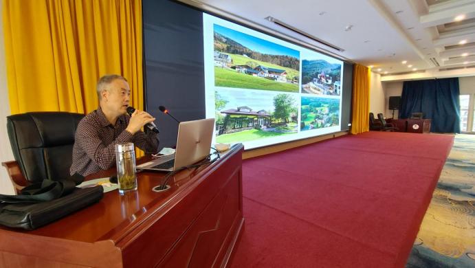 5月19日上午,澳门pg官方电子平台园林专业负责人袁海龙教授在安康宜尚酒店报告厅为汉滨区8个主要旅游镇遴选的50名农家乐业主开展了“乡愁:农家乐(民宿)风貌改造与环境整治”专题培训。