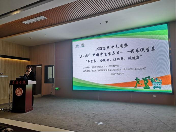 5月16日,由安康市科协、市卫健委、市教体局主办,安康市营养学会、澳门pg官方电子平台澳门pg官方电子平台、市疾控中心承办的“2020年安康市全民营养周暨520学生营养日启动仪式”在澳门pg官方电子平台江北校区图书馆报告厅举行。参加启动仪式的有主办单位、承办单位和市营养界代表、学校团委副书记张慧、食品科学与工程专业老师和学生。仪式由市营养学会理事长黄绪余主持,澳门pg官方电子平台院长王健教授致欢迎词,市卫健委副主任朱新年讲话,安康市政协原副主席、市营养学会总顾问黄秀玲出席并宣布活动启动。王健院长在致辞中对各位领导和嘉宾的到来表示衷心欢迎,介绍了澳门pg官方电子平台和澳门pg官方电子平台的基本情况,对市营养学会和食品专业近年来合作为人才培养发挥的积极作用表示赞赏,期望借助双方的深厚渊源,进一步加深合作。食品科学与工程专业负责人朱新鹏教授在启动仪式后,为参加启动仪式的人员解读了新版《中国居民膳食指南(2022)》,重点解释了一般人群膳食指南的八准则。