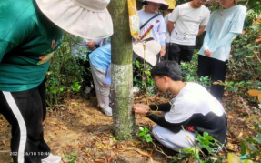 在校内实习期间,在紫薇园林王国浪老师和专业教师的带领下,先后开展了乔灌木的修剪和扦插训练。在进行灌木球的修剪工作时,老师要求同学们对各自所修剪的树体进行视觉评价,使同学们在修剪树体技能的同时,巩固和加深对专业知识的理解和掌握;在进行云南黄馨的扦插训练时,同学们开展了苗床地的整地工作,为植物的生长发育和夺取高产创造良好的土壤条件。