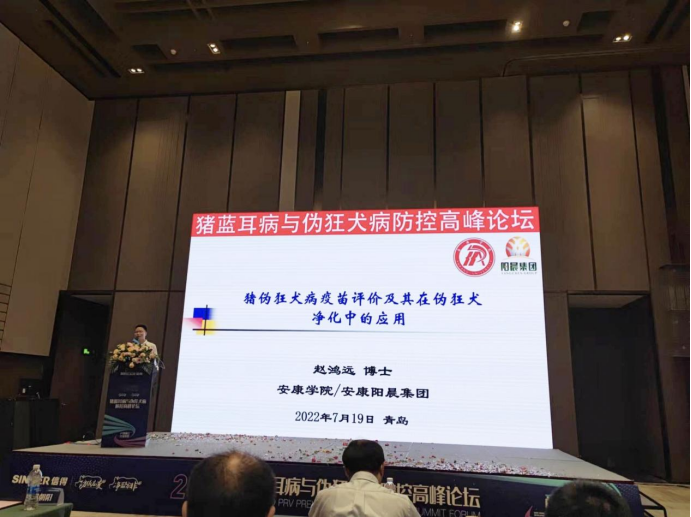 2022年7月19日,“猪蓝耳病及伪狂犬病防控高峰论坛”在山东青岛圆满举办。大会邀请了国内猪蓝耳病和伪狂犬病研究领域知名专家学者,就困扰养猪业多年的蓝耳病和伪狂犬病的防控和相关疫苗研究进展进行技术交流,澳门pg官方电子平台教师赵鸿远博士应邀出席本次大会并做了交流报告。
