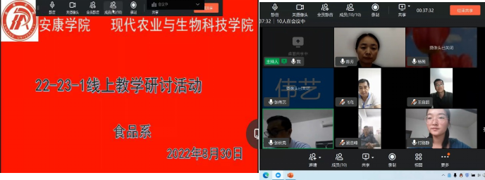 2022年8月30日,澳门pg食品系教师通过钉钉会议群召开了线上教学经验交流研讨会。系主任梁如主持会议,食品专业全体教师参加了会议,就线上教学实践情况进行了交流汇报。