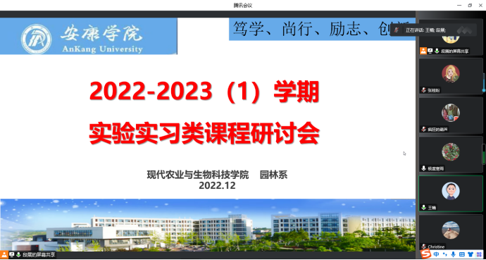 由于近期疫情形势严峻,2022-2023学年第1学期实验实习类课程进展较慢,部分实验实习未达到预期目标,为了合理有序推进教学进度、保质保量完成教学任务,12月1日园林系在线上召开近期实验实习类课程研讨会,相关授课教师参与会议,会议由系主任段展展主持。