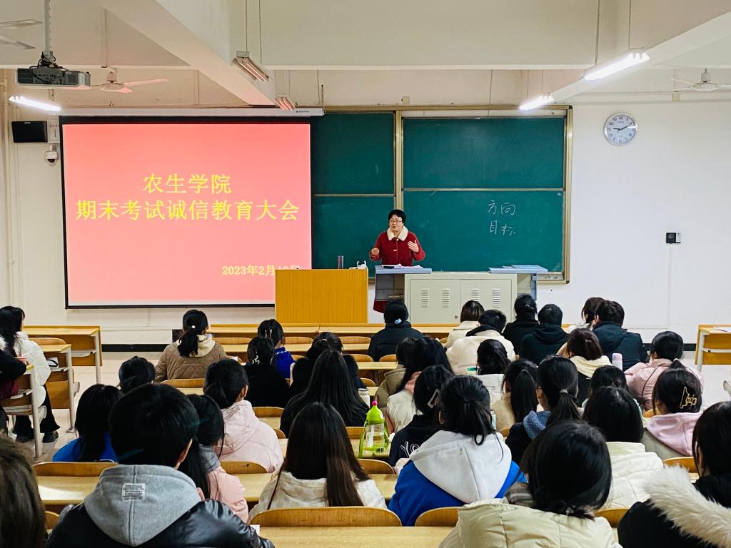 为了进一步加强学风建设,严肃考试纪律,营造公平公正、诚实守信的考试氛围,2月16日,澳门pg官方电子平台召开2022级学生诚信考试教育大会,党总支书记孙保本、副院长杨芳出席会议,会议由辅导员张伟艺主持。