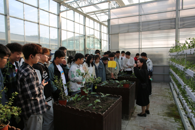 首先,园区负责人带领同学们参观了园区的立体栽培设施以及先进的智能化农业生产设备,指出现代农业的发展方向。然后,师生在园区会议室进行了座谈。座谈会上,忠诚村支部副书记、天瑞源公司副总经理吴斌进一步介绍了公司的发展理念,并从优异品种引进筛选鉴定,到快速育苗以及示范推广等方面的工作做了详细讲解,并希望同学们通过专业知识的学习,为乡村振兴注入活血。随后,孙保本、张丽琼、李川、赵卫国、刘欢、刘乔斐、刘佳、田洪云、王瑞娴、谭超等老师相继介绍了农学专业特点以及优势,并分享了自己的学习经历,要求同学们做好自己的学习规划,为自己的成长成才积极努力。