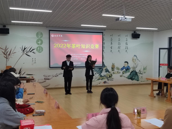 为巩固学生的专业知识,丰富茶学专业第二课堂,促进学生之间专业知识的交流和学习、培养学生团队协作和临场应变能力,于2023年3月25日上午,江北校区产教融合大楼414茶文化与茶艺实训室成功举办了2022年茶叶知识竞赛活动。茶学系齐玉岗、谢满超、马瑛、吴冲、袁月和程晓梅老师,以及茶学2020级、2021级和2022级的学生参加了此次活动。马瑛老师为本次活动致开幕词。