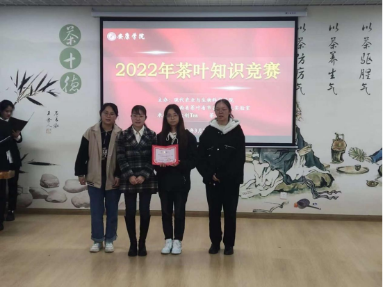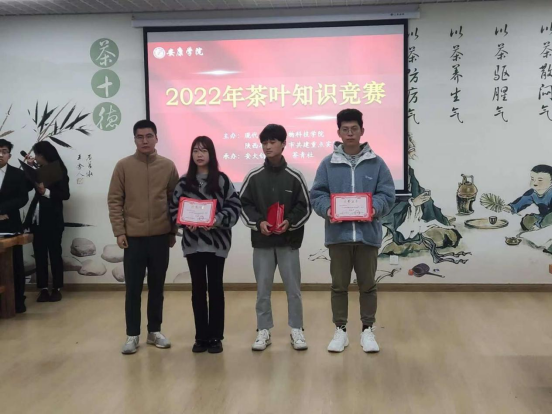 本次竞赛内容涵盖了茶文化、茶叶生物化学、制茶学、茶树栽培学、茶艺、茶叶营养与功能等专业课程的知识。竞赛题目有必答题、抢答题、风险题和加分题四种题型,六个小组轮流作答,竞赛成绩为各题型总成绩之和。在竞赛中,同学们积极参与、反应激烈,表现出了扎实的专业知识,体现了较高的专业素养以及应变能力。在几轮激烈的比拼之后,由黄温柔、李艳、张心语组成的茶韵书馨队即第四组选手脱颖而出,以优异的成绩获得比赛第一名。