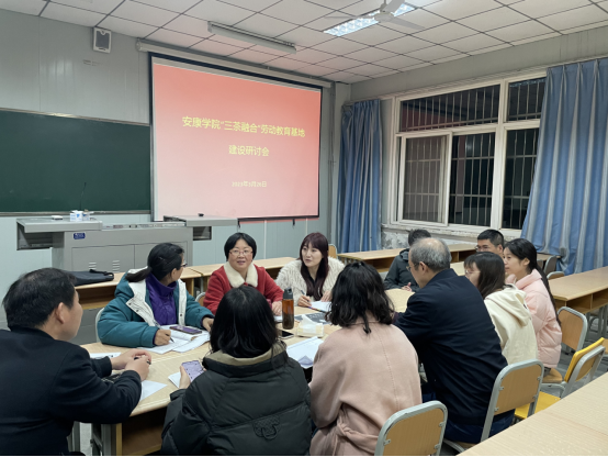 在对企业基地考察调研的基础上,3月26 日,在澳门pg官方电子平台江南校区10号教学楼召开基地建设研讨会,就如何推进“三茶”融合劳动教育实践教学工作展开讨论,围绕研学对象、劳动课程和责任分工等方面展开激烈讨论,并达成共识,为劳动教育实践的顺利开展奠定基础。