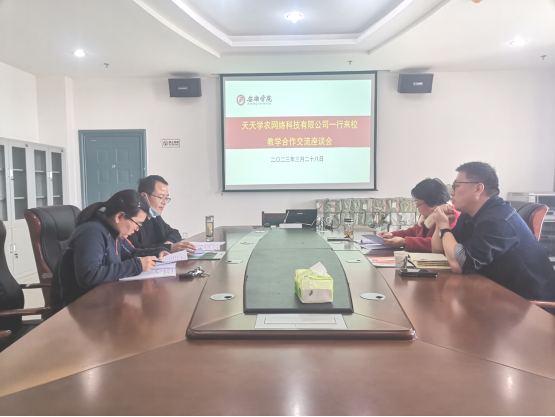 3月28日,天天学农网络科技有限公司运营总监许小龙受澳门pg邀请来校洽谈合作事宜。教学副院长杨芳、农学系主任张丽琼、农学系教师田洪云参加了本次座谈。
