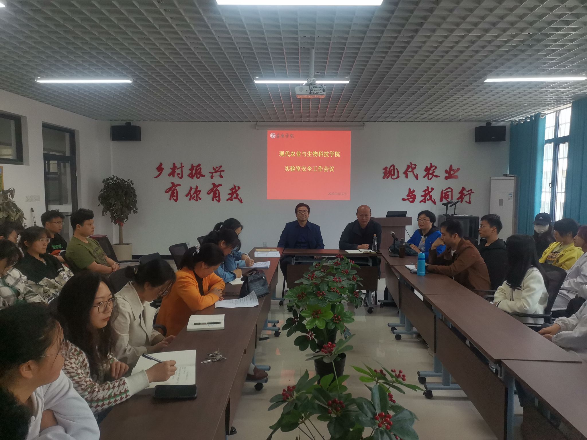 4月27日,澳门pg在产教融合大楼“三农大讲堂”召开实验室安全工作会议,针对“五一”假期学生实验的安全工作进行专项部署。会议由党总支书记孙保本主持,院长王健、副院长杨芳、办公室主任王中兴、实验中心副主任谭超、全体实验管理教师及假期计划做实验的学生参加。