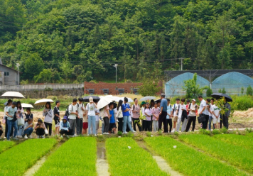 在水稻栽培育秧田,汪德义推广研究员为学生介绍了水稻70多个参试品种及目前秧苗长势情况,并对水稻育秧田的设计、规划、水稻育秧技术和栽培管理给予系统讲解。