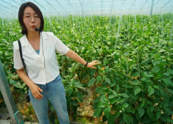 在设施大棚中,高级农艺师梁静娜从设施大棚的设计、构造、每层膜的不同功能用途、辣椒和西红柿高产栽培的水肥温气管理、整枝打叉、病虫害防治等方面进行详细讲解。