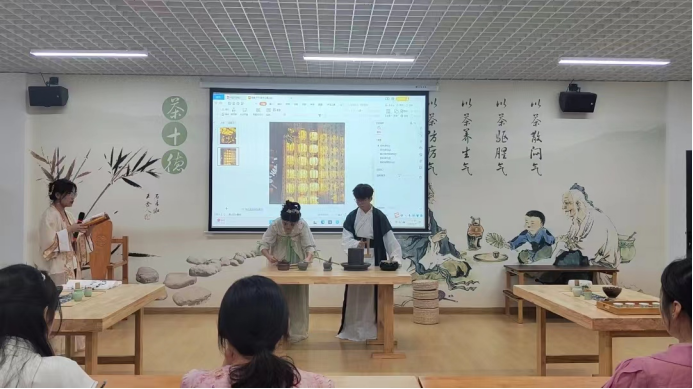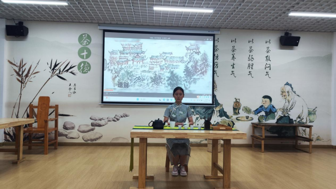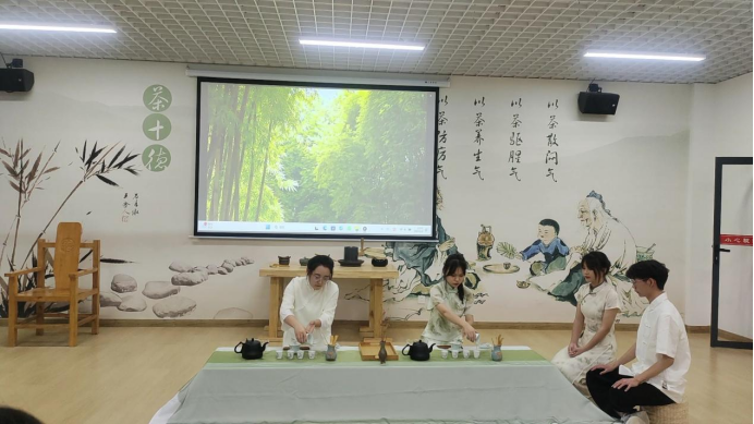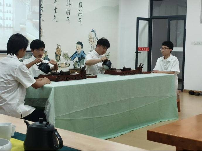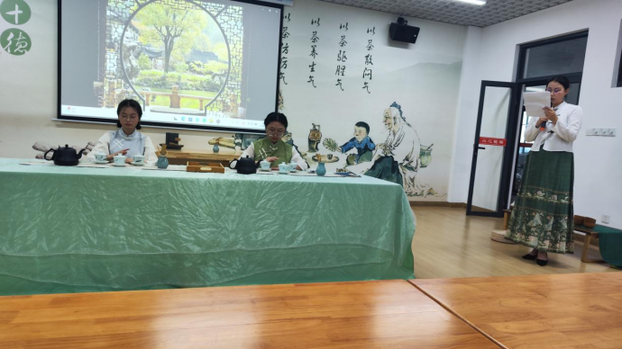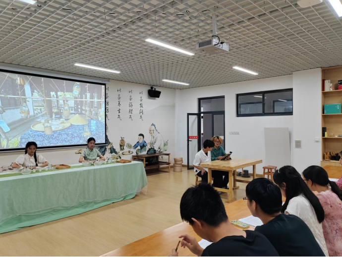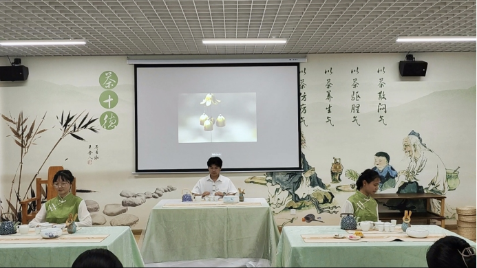 2022年6月9日上午,在产教融合大楼4楼茶文化及茶艺实训室进行了实习作品展示,马瑛老师及有茶艺参赛经验的三名茶学大四学生担任本次考核的评委。本次共有8个作品进行展示,作品质量从创意、茶艺礼仪、茶席布置、茶艺技能和茶汤质量五个方面进行评判,重点内容为茶艺技能。
