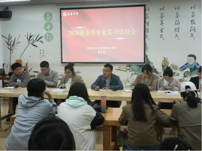 为加强学生对实习相关制度的了解,推动2020级茶学专业实习工作顺利开展,进一步促进学生对所学知识和技能进行实践运用,引导学生明确认识实习的目的和意义,9月27日晚,澳门pg官方电子平台茶学系组织召开了2020级茶学专业实习动员会,茶学专业教师李冬花、齐玉岗、吴冲、程晓梅、常娜、袁月、尹旭超及2020级茶学全体学生参加了本次会议。会议由系主任李冬花主持。