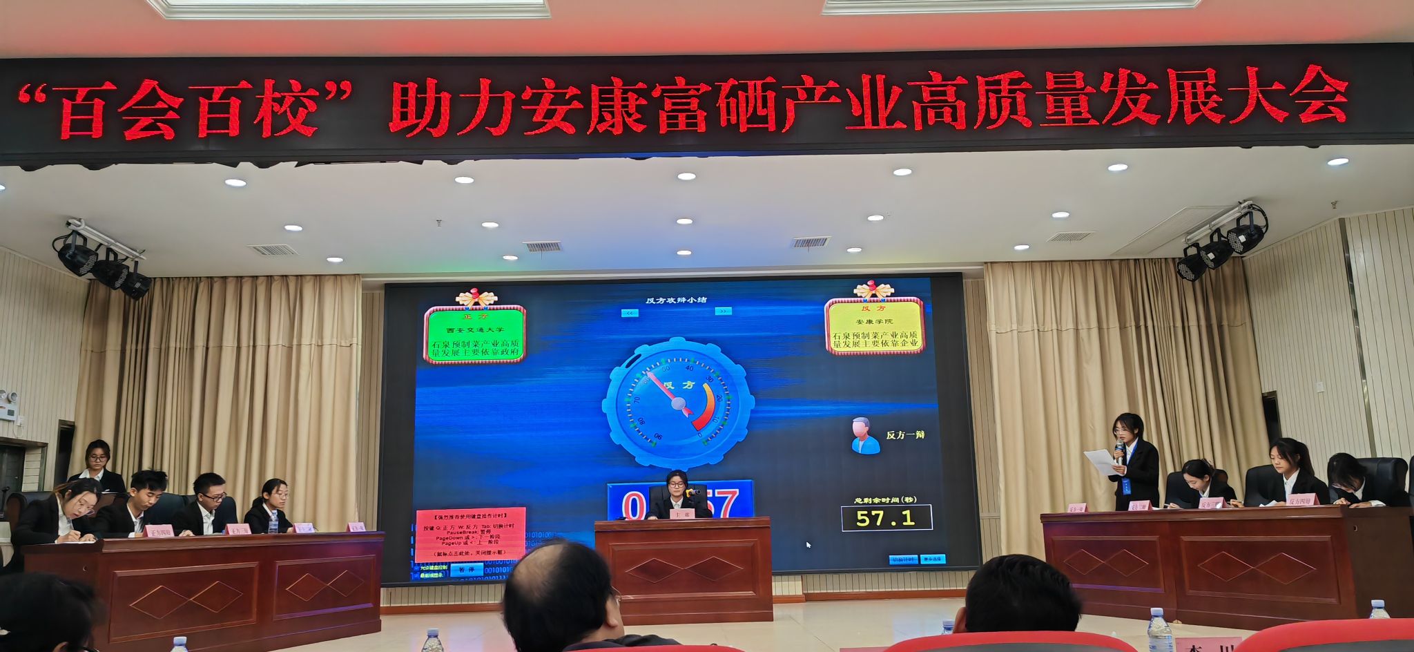 大会开设专场“硒望之星”大学生辩论赛。我校由食品科学与工程专业2022级李心静、孙瑜欣、史佳欣和卜晨阳组成代表队参赛。在11月19日举行的初赛上,经抽签我校代表队与陕西科技大学代表队,就“现代食品制造,美味更重要(我校正方)”“现代食品制造,营养更重要(陕西科技大学反方)”在线上进行辩论。双方斗智斗勇、唇枪舌剑,展开激烈辩论,最终我校代表队主打中国饮食“食以味为先”“人体健康不单需要营养,还需要良好的心态等因素,而美食就能给人们带来心情的愉悦”赢得了评委的认可,初赛胜出。史佳欣还赢得了本场最佳辩手的称号。