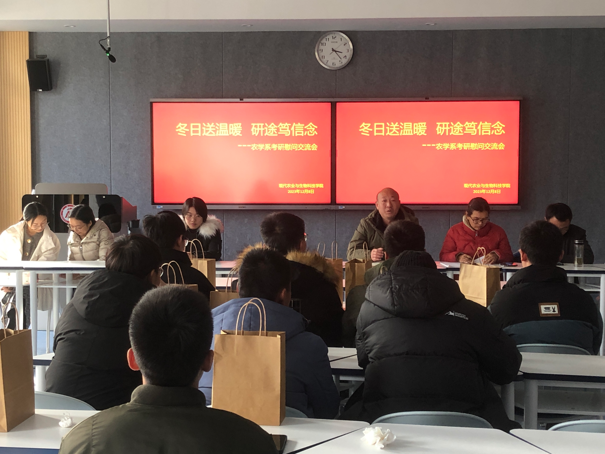 学院一直高度重视学生考研工作,从新生入学开始,就通过专业思想教育、个人成才教育及就业形势分析,激发学生考研动力,同时借助专业教师优势,定期开展考研交流会,在思想、学习和生活等各方面为考研学生提供指导和帮助。特别是在这初冬时节,学院的关怀和慰问,将为考研学子注入前进动力。