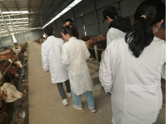 学生们参观了公司饲养的陕南水牛和黄牛,参观过程中两位老师向学生们讲解了牛妊娠诊断的重要性、原理和方法。通过本次对公司水牛和黄牛的参观,不仅为学生们提供了近距离接触牛生产的机会,也让学生们更深入地了解了动物繁殖学在牛生产中的地位。