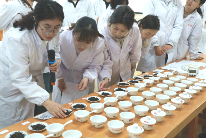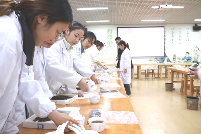 为提升茶学教师的专业素养和教学能力,提高课堂教学质量,11月27日下午,于江北校区茶艺室,茶学系组织开展了《茶叶审评》公开课教学活动,由茶学系主任李冬花主讲,茶学教师常娜、袁月、程晓梅、吴冲、尹旭超、刘静及茶学21级全体学生参加了此次公开课活动。