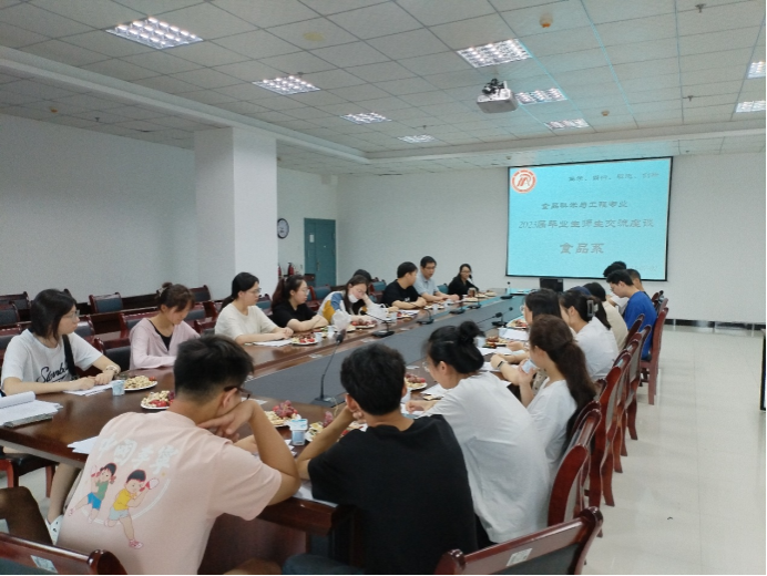 7月2日上午,食品系在逸夫楼A901室召开2023届毕业生座谈会。本次活动由系主任梁如主持,朱新鹏教授和付路静老师及2023届毕业生参加本次活动。
