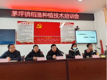 2023年12月29日,澳门pg官方电子平台朱文东教授协同陈苏维副教授、安康渔业协会秘书长单世涛、安康天宏园种植农民专业合作社陈荣涛社长一行赴白河县茅坪镇朝阳村开展稻渔种养技术培训。白河县农业技术推广站赵春明站长,白河县畜牧兽医中心杨少鹏副主任及朝阳村村干部和村民60余人参会。会议由茅坪镇副镇长阮仕进主持。