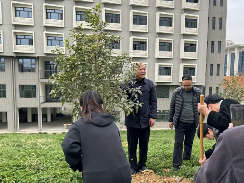 植树现场,气氛热烈。师生们热情高涨、干劲十足,大家纷纷挥锹铲土、挽袖栽树、提水浇灌,种下了一排排整齐的苗木,将春天的种子撒向希望的田野里,共同为绿色家园添砖加瓦。在活动现场,孙保本向青年人才发出倡议,勉励同学们要德智体美劳全面发展,不能忽视“劳”的作用,培养劳动意识、环保意识,不断锤炼自身意志品质,努力成长为党和人民需要的有用之才。