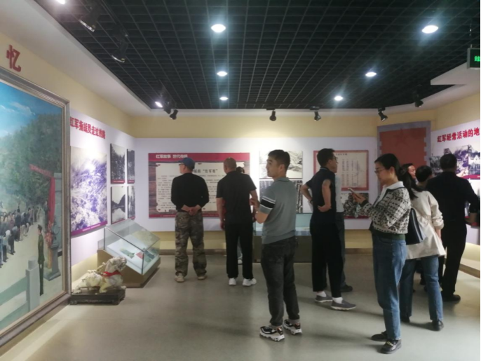 下午15点到达红军镇红军纪念馆,组织教师们缅怀革命先烈,更好的赓续传承红色基因,深刻感受当时红军与当地老百姓的深情厚谊。了解红军纪念馆的产生缘由与发展历程,1935年徐海东、程子华率红二十五军转战到此,创建了革命根据地,建立地方苏维埃政权。在1935年10月18日的战斗中,为掩护红军主力转移,特务班14人与敌人400人激战,有"神医"、"医官"之称的指导员高中宽和尚班长壮烈牺牲,当地老百姓秘密掩埋了烈士遗体于现红军镇九龙山下,事后修坟、立碑、塑像,在家设立牌位敬奉,尊称"红军老祖"。老百姓经常来此悼念烈士,祈求"红军老祖"赐福保平安。澳门pg官方电子平台分会组织党员教师在红军英雄纪念碑前举行了集体入党宣誓。随后集体参观了四个基本陈列展厅,通过战争兵器、生活用具、老照片、油画、国画、文献资料等多种有效形式,全方位地展现了红三军、红二十五军在旬阳的革命斗争史。