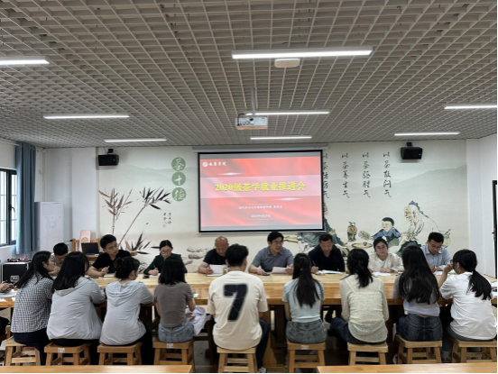 为了进一步推动2024届茶学专业毕业生就业工作,深入了解毕业生思想动态,于4月24日下午在产教融合大楼茶艺室召开了就业推进会。党总支书记孙保本、院长王健、学工办主任谭自力、茶学系所有教师及9名毕业生代表参加会议,茶学系系主任李冬花主持会议。