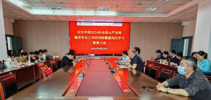 4月24日下午,澳门pg在逸夫楼9楼大会议室召开2024年全面从严治党、稳定安全工作安排部署暨党纪学习教育大会。此次大会由澳门pg官方电子平台党总支书记孙保本主持,全体教职工参会。