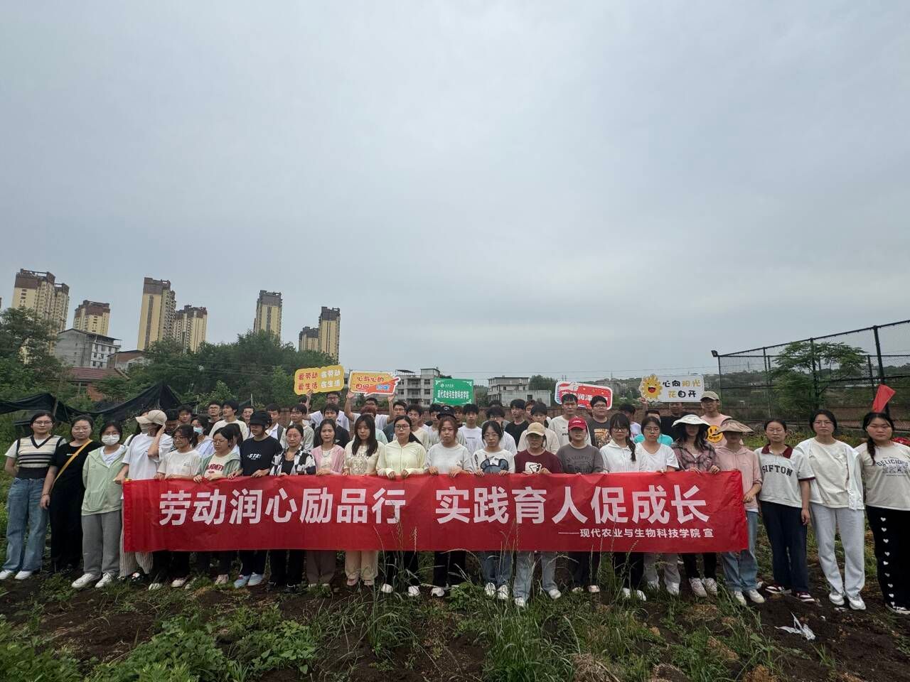 5月11日下午,澳门pg在江北校区实训基地开展“躬行田间,以劳健心”劳动实践活动,使大学生在劳动实践中“苦其心志、劳其筋骨”,帮助学生培养积极向上的心态,增强自我认知与团队协作能力,促进学生全面成长。活动由团总支书记郭杨娟、农学系副教授田洪云博士带队,七十余名学生代表参加。