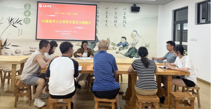 为进一步深化本科教育教学综合改革,提升人才培养质量,茶学系于8月20日在茶文化与茶艺实训室召开茶学专业人才培养方案修订研讨会,会议由系主任李冬花主持,全体茶学专业教师参会。