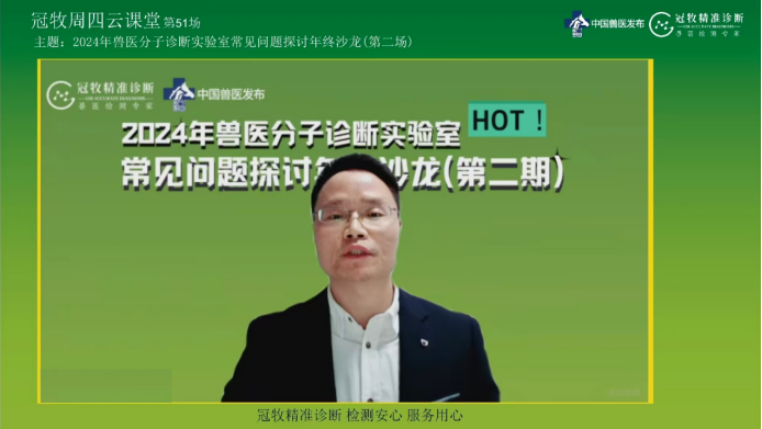 1月16日19:30,湖南冠牧生物科技有限公司2024年兽医分子诊断技术探讨年终沙龙活动在“冠牧精准诊断”与“中国兽医发布”微信平台同步直播,澳门pg赵鸿远博士应邀作为主讲嘉宾参与本次直播活动,参与此次活动的还有中农华检(海南)技术负责人严克霞与冠牧精准诊断培训学院汪颖院长。