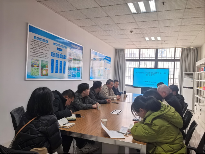 随后一行人进行了座谈,实验室孟刚主任首先详细介绍了我校蚕桑实验室的研究方向、科研团队建设和最近的研究进展。潘国庆研究员向大家介绍了西南大学在蚕桑学科前沿研究的最新动态,特别是家蚕微粒子病及病源方面取的最新研究成果,并对我校蚕桑实验室在野桑蚕种质资源保存、繁育与家蚕新品种选育、桑资源研究与利用及病虫害防治等方面取得的进展给予了高度评价。同行的孟宪志博士、孙权博士介绍了各自的研究方向和成果,迅检(重庆)生命科技有限责任公司总经理吴江皓博士介绍了该公司在智慧农业的数字化防控体系和生物制造方面的成果和装备。双方围绕家蚕微粒子虫的检测技术优化、蚕桑病虫害绿色防控技术、蚕桑资源的多元化利用等方面展开了讨论,并在家蚕微粒子病病原先天免疫机制研究、桑树病害机制及防控、丝胶蛋白深度开发等领域深度探讨了合作内容和意向。会后,双方表示将以此次考察交流为契机,进一步加强沟通与协作,共同为我国蚕桑科研事业的发展贡献力量。