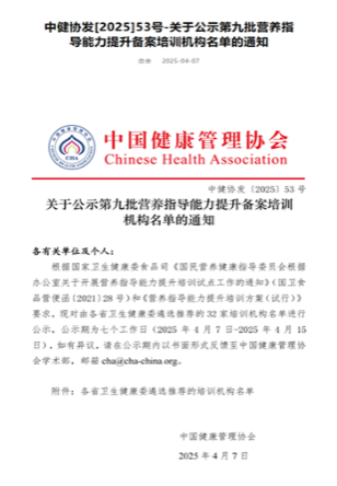 4月7日,中国健康管理协会公布了第九批国家营养指导员能力提升备案培训机构名单,我校正式获批成为国家营养指导员备案培训机构。这是学校贯彻落实《国民营养计划(2017-2030年)》和《健康中国行动(2019-2030年)》的重要举措,标志着我校食品与营养专业的营养健康社会服务能力迈入国家级平台,将为基层培养专业化、规范化的营养指导人才,助力健康中国建设。